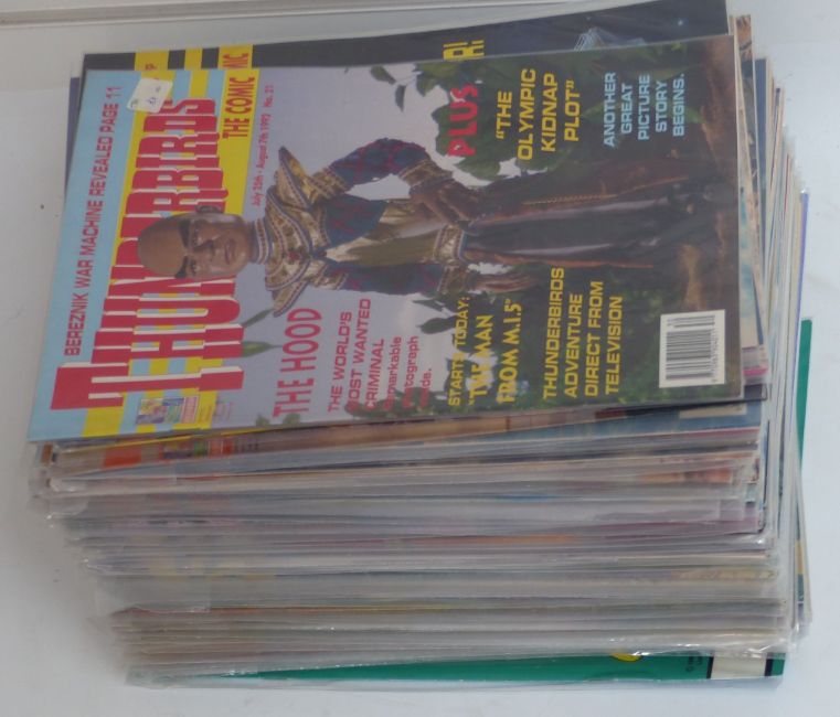 One-hundred-and-thirty-five Thunderbirds and Stingray comics including a run of Thunderbirds 1-67, Thunderbirds poster magazines 1-9, Stingray 1-24 and Stingray poster magazines, some special editions and some with free gifts.