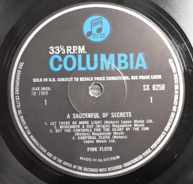 Pink Floyd - A Saucerful of Secrets (SX6258) File Under Popular XAX3663-1/YAX3634-1, record appears VG with some wear to cover