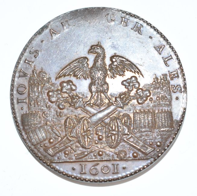 Henri II Artillery bronze medallion 1601, diameter 49.6mm, approximately 51g