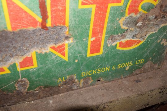 Vintage enamel advertising sign 'Dicksons of Hawlmark for seeds, floral arts & plants' (Northern Ireland), 76 x 153cmPLEASE NOTE this lot is located at and will be sold from Cocknells Farm, Moreton Valence, Gloucester GL2 7LZ. Viewing is available on Tuesday 6th July 10am to 4pm and before the sale on Saturday 10th July from 9am to 11am, no appointment is necessary but we will limit numbers if required to ensure social distancing is observedWe are not able to offer our usual postage service for this lot