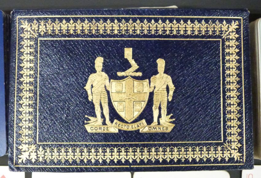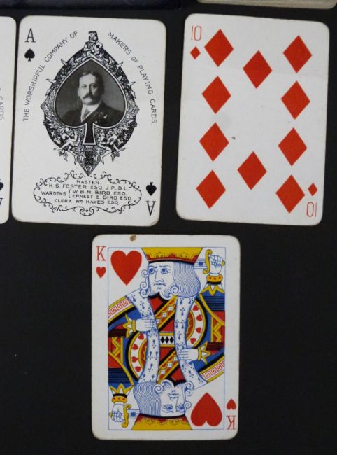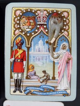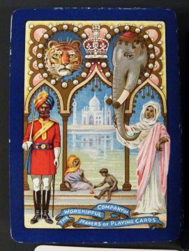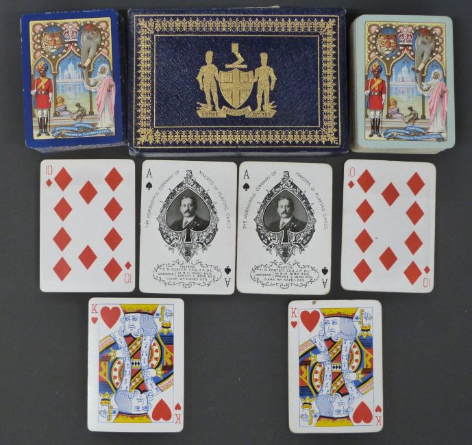 Double pack of Worshipful Company of Makers of Playing Cards playing cards, 1911 with Indian themed backs, in original slip cases