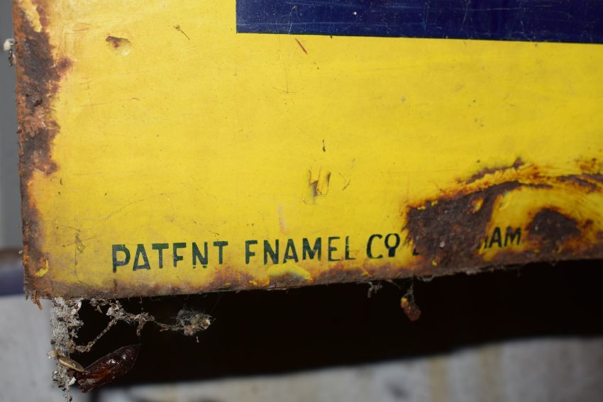 Vintage enamel advertising sign 'Puritan Soap', 46 x 122cm PLEASE NOTE this lot is located at and will be sold from Cocknells Farm, Moreton Valence, Gloucester GL2 7LZ. Viewing is available on Tuesday 6th July 10am to 4pm and before the sale on Saturday 10th July from 9am to 11am, no appointment is necessary but we will limit numbers if required to ensure social distancing is observedWe are not able to offer our usual postage service for this lot
