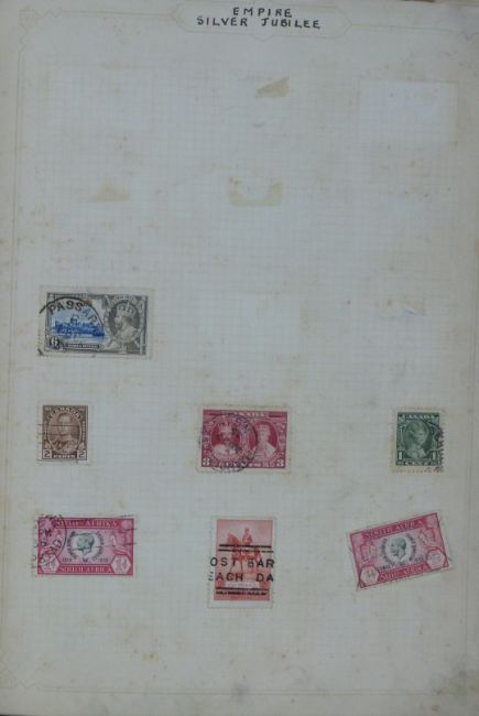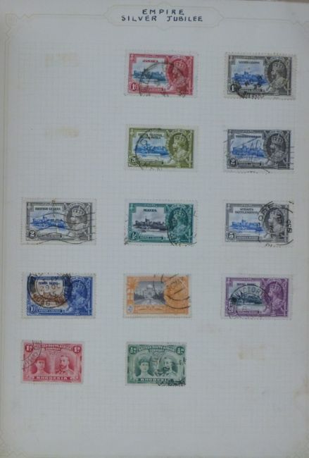 Simplex blank album with well presented mainly Edwardian era all world stamps including Empire Silver Jubilee, Abyssinia, British South Africa, Azores and Angola Post Colonies, Ceylon, Indian States, Surinam, Hong Kong etc