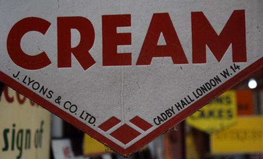 Vintage double sided enamel advertising sign 'Lyons' Ice Cream', 51 x 40cmPLEASE NOTE this lot is located at and will be sold from Cocknells Farm, Moreton Valence, Gloucester GL2 7LZ. Viewing is available on Tuesday 6th July 10am to 4pm and before the sale on Saturday 10th July from 9am to 11am, no appointment is necessary but we will limit numbers if required to ensure social distancing is observedWe are not able to offer our usual postage service for this lot