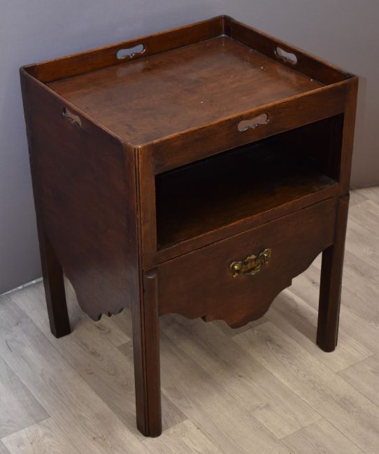 19thC mahogany tray topped pot cupboard with shelf and faux drawer, W55 x D48 x H71cm