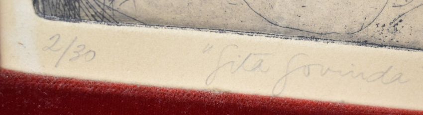 Two limited edition / artist's proof engravings 'Trace Spirit' and 'Gita Govinda' both dated 66 and signed indistinctly, one A/P the other 2/30, largest 45 x 30cm