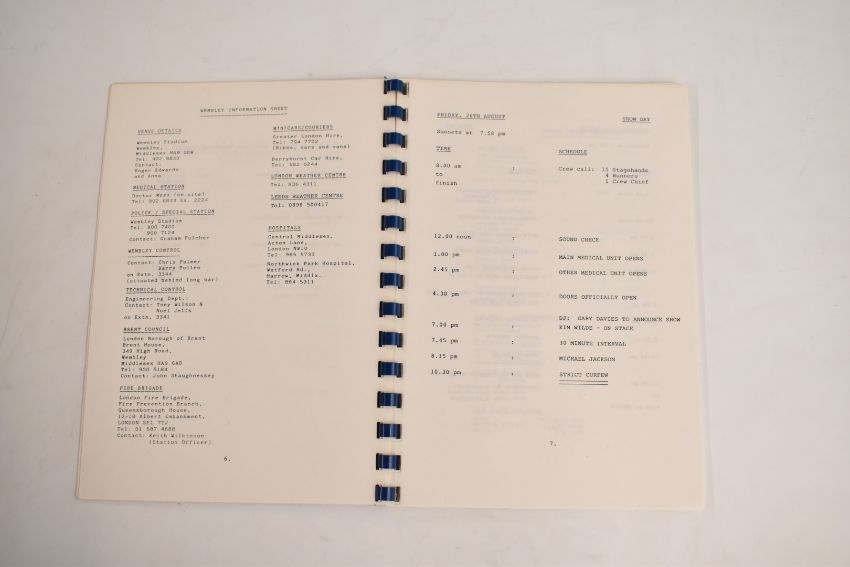 Michael Jackson - crew tour itinerary for Wembley Stadium, Friday 26 - Saturday 27 August, Milton Keynes Bowl, Saturday 10 September and Aintree Racecourse Sunday 11 September