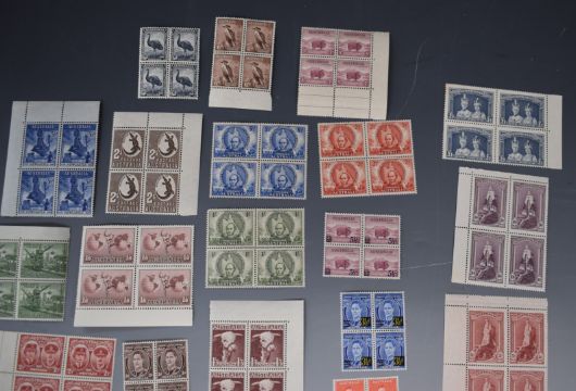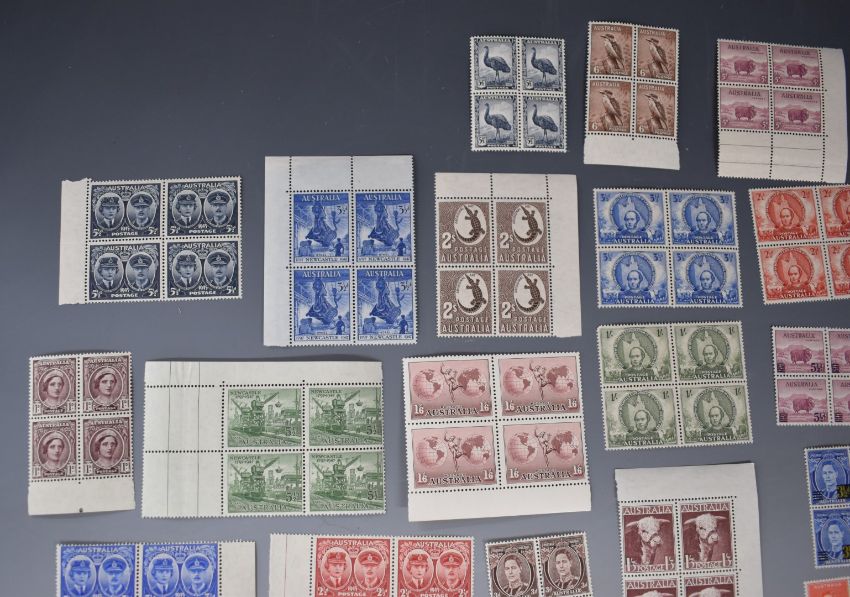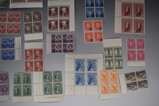 Sundry Australia stamps, mainly George VI, in mint blocks x 4 including 1937-49 5s, 10s and £1