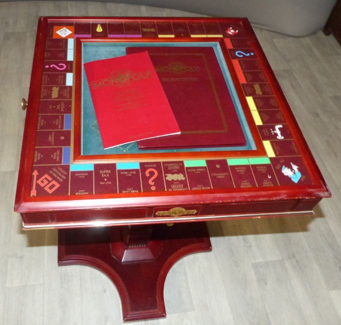 Franklin Mint collector's edition Monopoly board game and table with built in drawers.