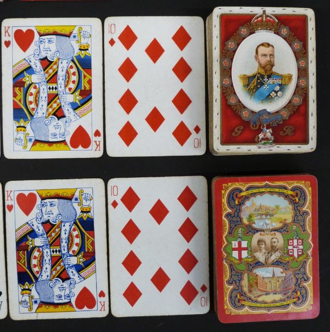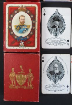 Three packs of Worshipful Company of Makers of Playing Cards playing cards commemorative packs comprising 1902 Edward VII coronation, 1906 Royal visit to India and 1911 George V coronation, all in original slip cases