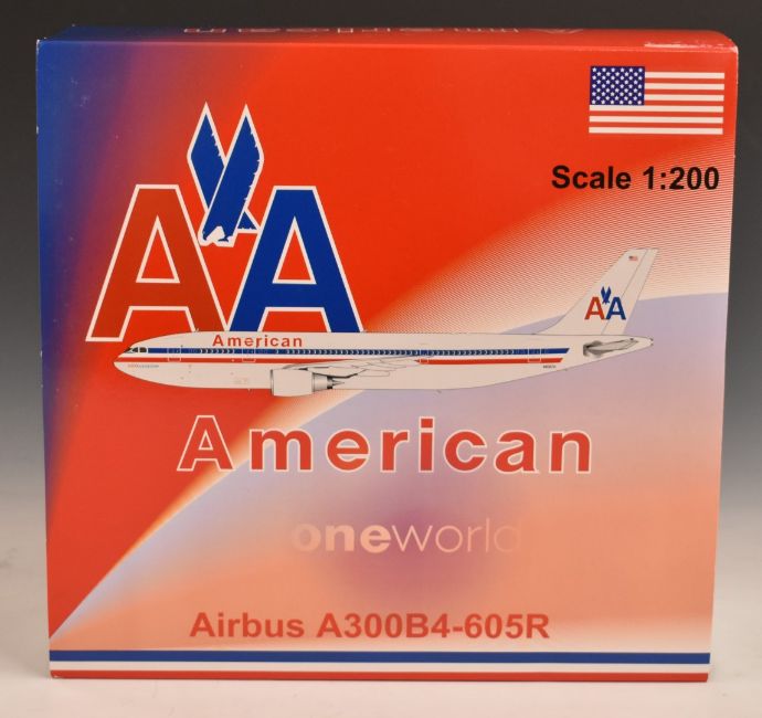 American Airlines 1:200 scale diecast model aircraft Airbus A300B4-605R in original box.
