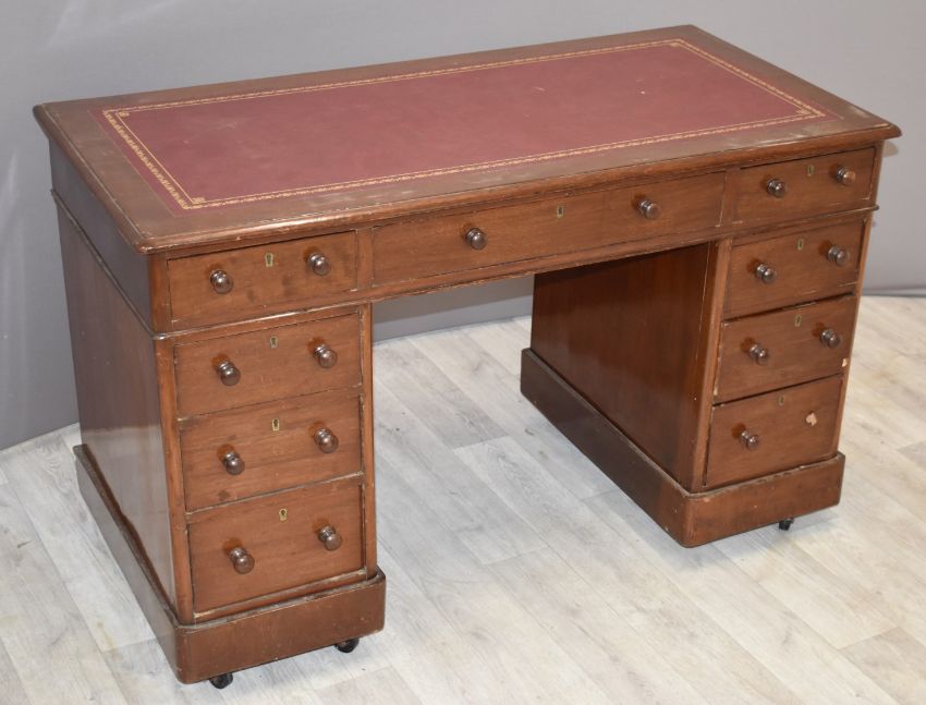 19th/20thC mahogany leather inset twin pedestal desk, W118 x D59 x H75cm