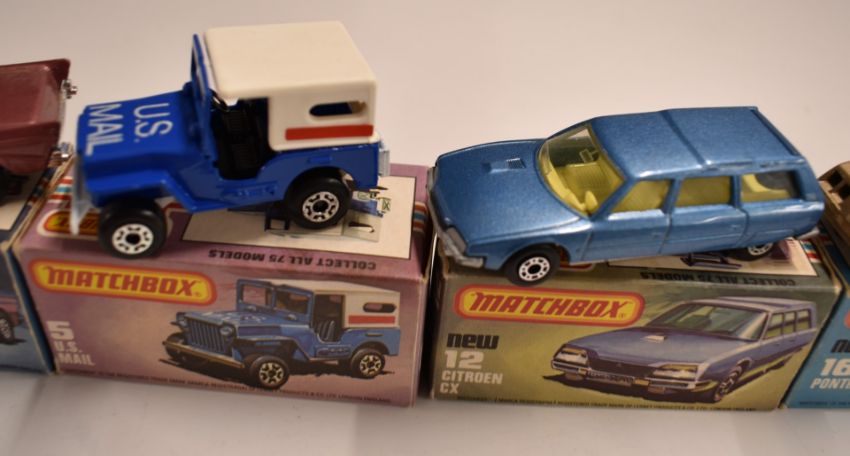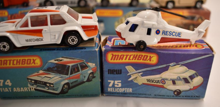 Seventeen Matchbox 1-75 series diecast model vehicles comprising 2, 4, 5, 12, 16, 27, 34, 51 x2, 52, 54, 59, 63, 70, 73, 74 and 75, all in original boxes.