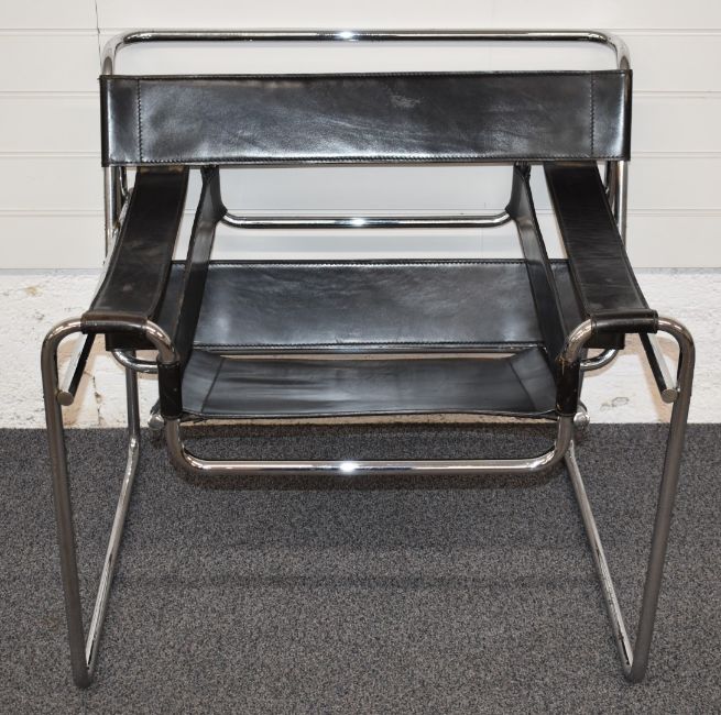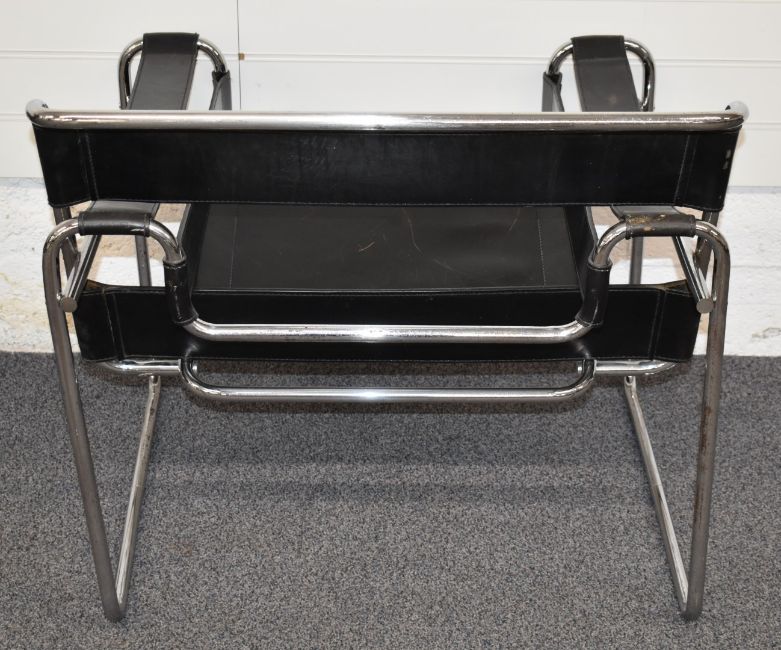 Wassily vintage chair designed by Marcel Breuer with leather upholstery on a chromed frame, W79 x D71 x H72cm