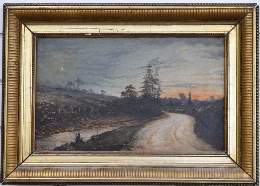 W.H. Bendall pair of late 19th or early 20thC oil on canvas landscapes 'The Sunset Hour' and 'Evening' Evendine, Colwall, Herefordshire, both titled verso, 24 x 39.5cm, in period gilt frames
