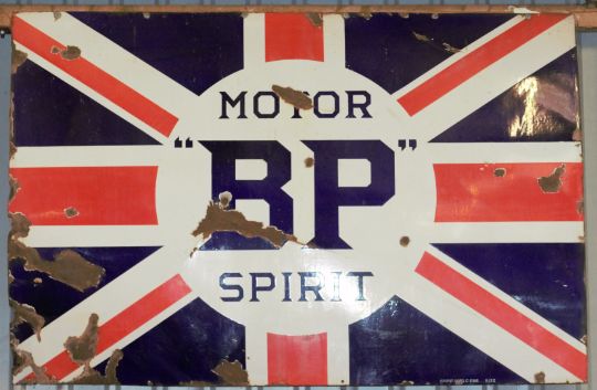 Vintage enamel advertising sign 'BP Motor Spirit', 122 x 183cmPLEASE NOTE this lot is located at and will be sold from Cocknells Farm, Moreton Valence, Gloucester GL2 7LZ. Viewing is available on Tuesday 6th July 10am to 4pm and before the sale on Saturday 10th July from 9am to 11am, no appointment is necessary but we will limit numbers if required to ensure social distancing is observedWe are not able to offer our usual postage service for this lot