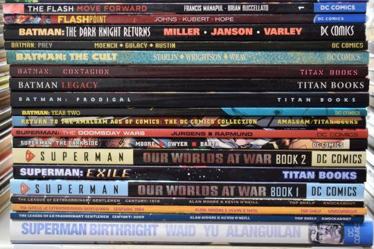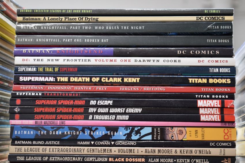 Forty Marvel & DC Graphic novels including Spider-man: No Escape, Superman: The Doomsday Wars, Batman: Knightfall, The Flash: Move Forward and The Green Lantern: Blackest Night.
