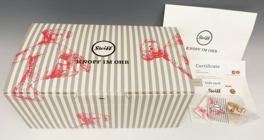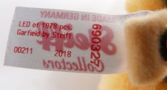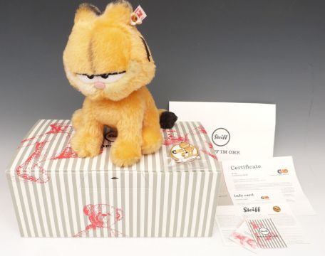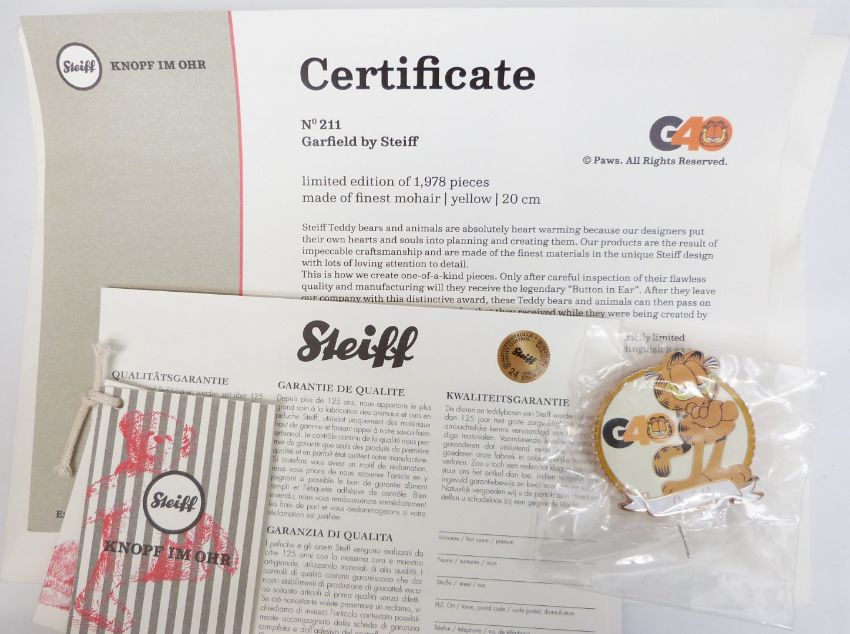 Steiff Garfield Teddy bear limited edition 211 of 1978, in original box with certificate, pin badge etc.