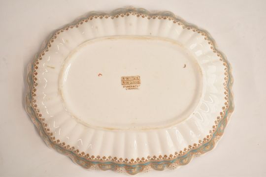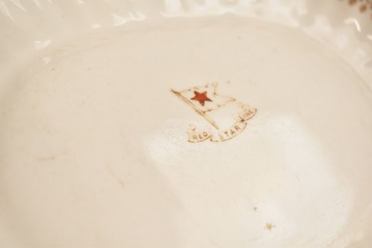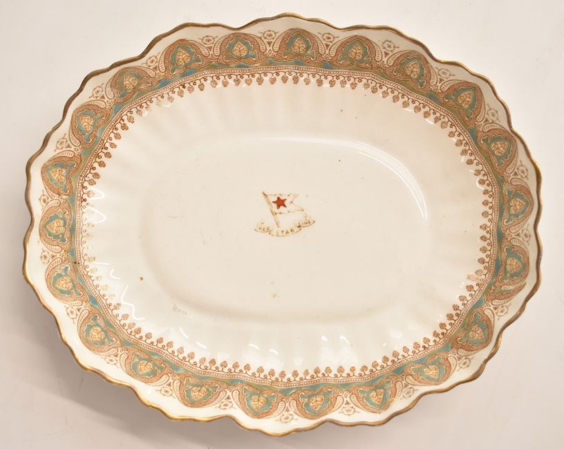 Red Star Line oval bowl with Stonier & Co. Ltd Liverpool to base, White Star Line transfer visible below current Red Star Line logo to centre of dish, of Olympic / Titanic interest, length 25.5cm