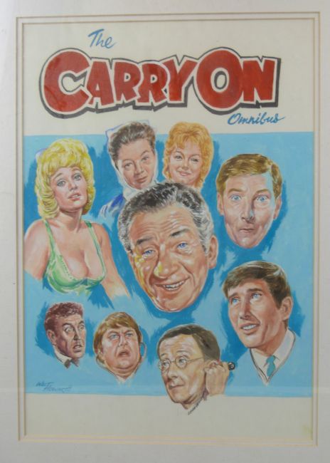 Walt Howarth watercolour original artwork of the The Carry On Omnibus, possibly a pre-production prototype, 41 x 29cm, framed and glazed.