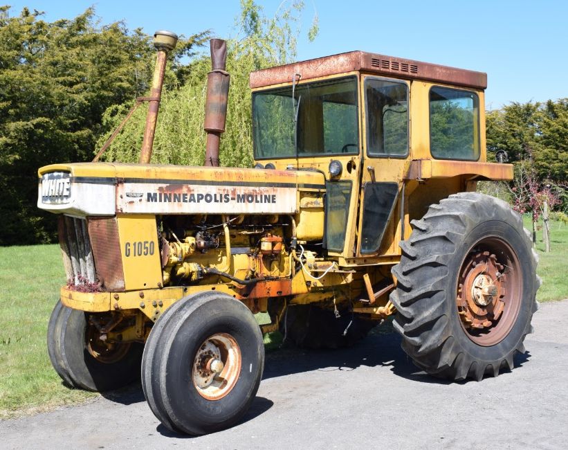 Minneapolis-Moline G1050 tractor with 6 cylinder diesel engine, 750 hours recorded, engine runs10%+VAT buyer's premium on this lotPLEASE NOTE this lot is located at and will be sold from Cocknells Farm, Moreton Valence, Gloucester GL2 7LZ. Viewing is available on Tuesday 6th July 10am to 4pm and before the sale on Saturday 10th July from 9am to 11am, no appointment is necessary but we will limit numbers if required to ensure social distancing is observedWe are not able to offer our usual postage service for this lot