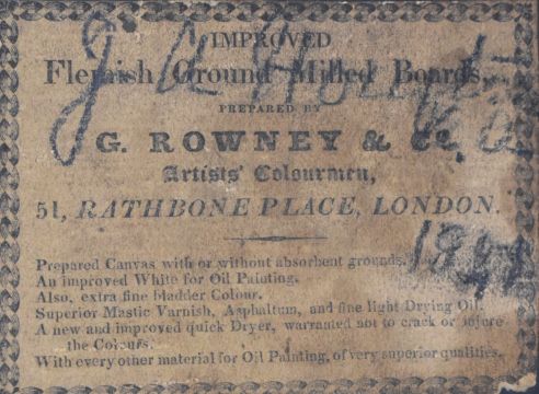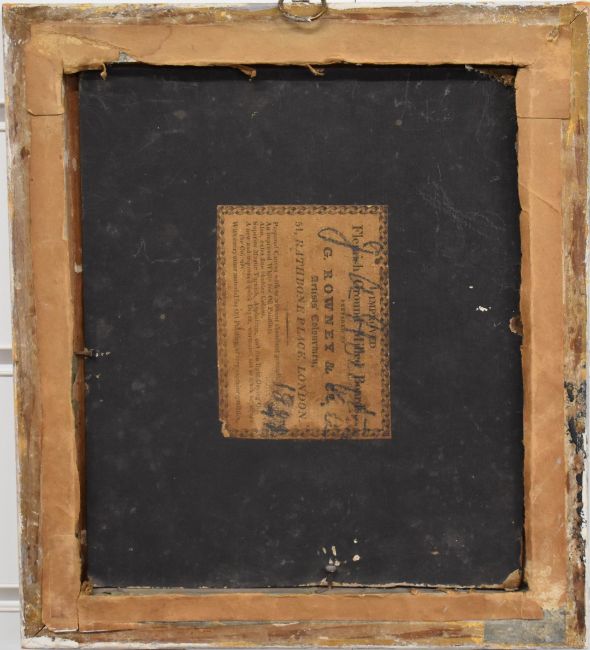 19thC oil on board head and shoulders portrait of a young man, indistinctly named and dated to label verso, 19.5 x 16.5cm, in part gilt frame
