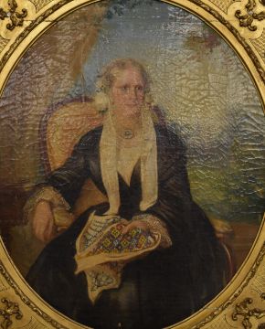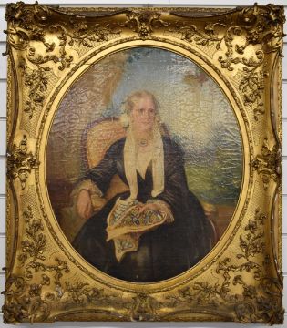Karl Hartman (1818-1857) Victorian oil on canvas of Mary Sparrow, nee Weaver (1841-1916), second wife of John William Sparrow, possibly Oxford spires in background, signed and dated 1855 to right hand edge, maximum diameter 59cm, in ornate giltwood frame