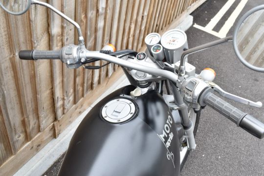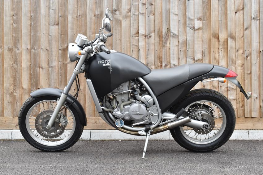 1997 Aprilia Moto 6.5 motorcycle designed by Philippe Starck, registration number P810 WBH, with V5c recording two owners from new MOT expires 23/02/2022, odometer reading 2,912km. The vendor purchased the bike from a friend who had purchased it new, the vendor does not ride and purchased it due to its striking looks, as such it has not been driven but has been professionally maintained including a current MOT, with MOT and recent service history10%+VAT buyer's premium on this lot