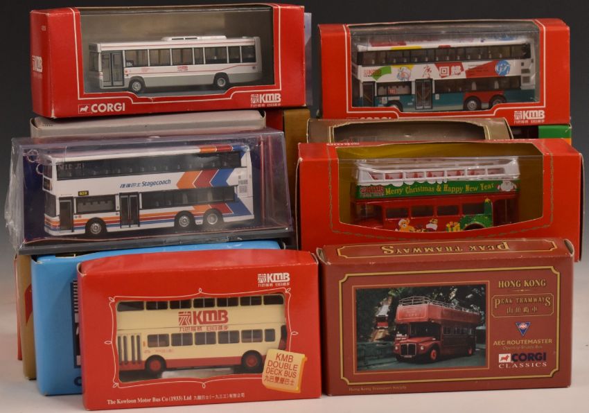 Twenty-Two Corgi 1:76 diecast vehicles, all relating to Hong Kong public transport including China Motor Bus Olympian, Kowloon Motor Bus Company Metrobus Double Decker and Stagecoach Hong Kong Ltd 3 Axle Olympian, all in original boxes.