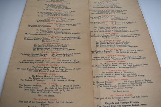 Two Victorian Diamond Jubilee 1897 Procession order sheets