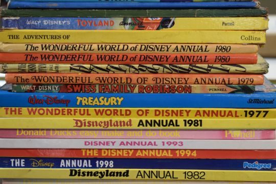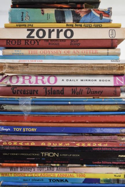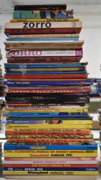 Fifty Walt Disney related books and annuals including Treasure Island, Donald Duck, Toyland, Tonka, Treasury, Tron, Zorro, Toy Story etc.