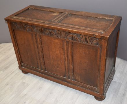 18th/19thC carved oak coffer, W115 x D47 x H82cm