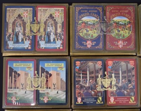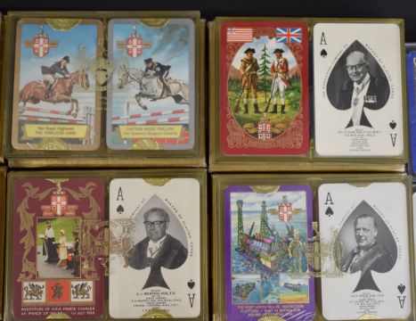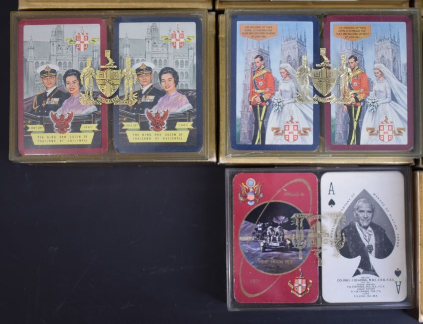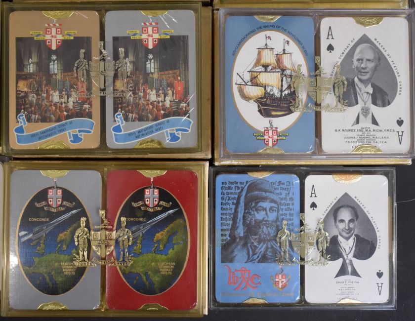 Thirty six packs of Worshipful Company of Makers of Playing Cards playing cards, comprising eighteen double packs, 1960, 1961, 1962, 1963, 1964, 1965, 1966, 1969, 1970, 1971 moon ride, 1972 Concorde, 1973, 1974 North Sea Oil, 1975, 1976, 1977, 1978, 1979, all in original cases