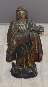 18th/19thC continental painted and gilt carved wooden figure, possibly ecclesiastical, H49cm