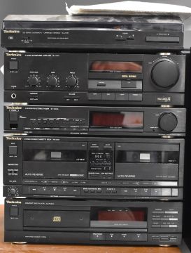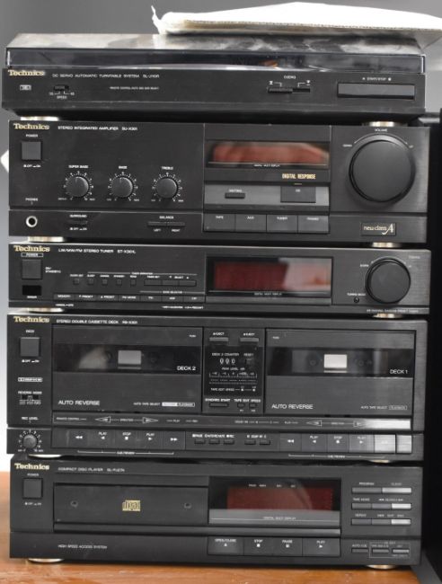 Technics hi-fi separates system to include SLJ110R record deck, SL- PJ27A compact disc player, SU x301 amplifier, stereo tuner, cassette deck and speakers, with instructions