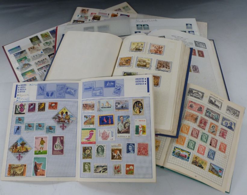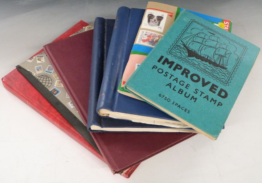 Seven stamp albums and stockbooks of all world stamps, all reigns