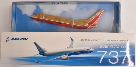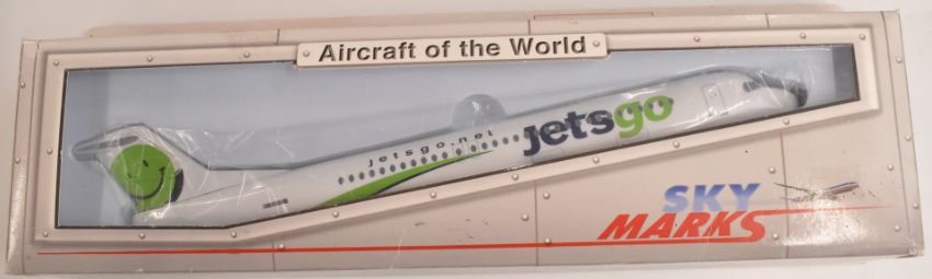 Six snap fit construction model aircraft including Sky Marks FedEx MD-11, Network Cargo Systems Boeing 747-400F and Jet2 Yorkshire Boeing 737-300, all in original boxes.