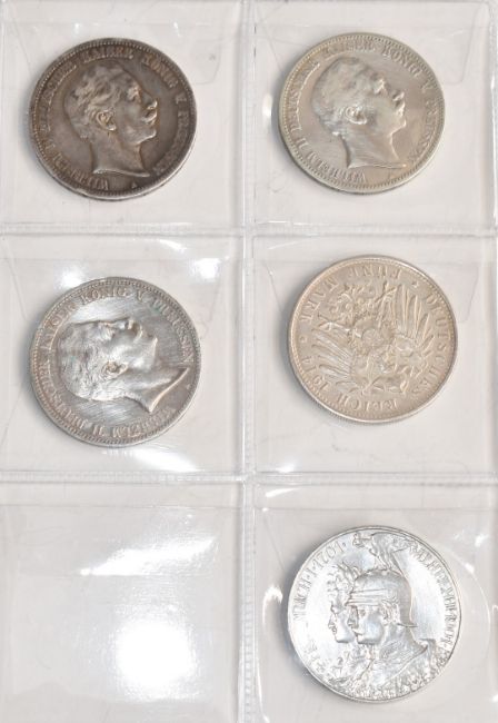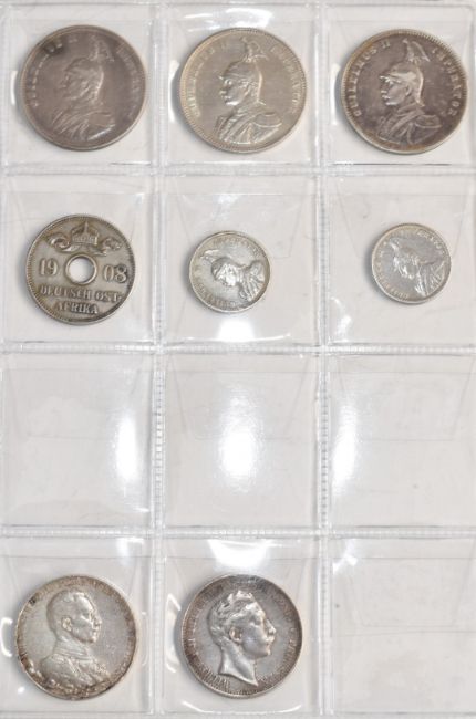 Schulz album of German silver coinage 1773 onwards including 1 rupee, Deutch Ostafrika, five 5 mark coins, seven 3 mark coins etc