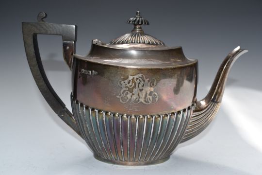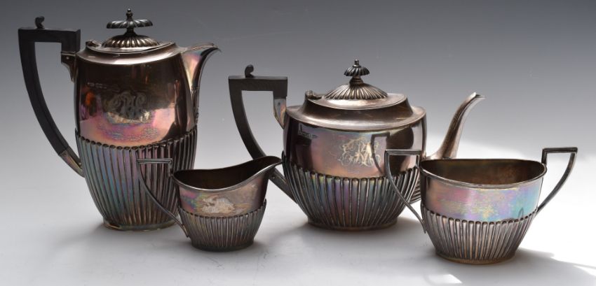 Walker & Hall George V hallmarked silver four piece teaset comprising teapot, hot water jug, sugar bowl and milk jug, Sheffield 1929, length of teapot 26cm, weight of all four items 1500g all in