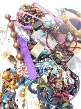 A collection of costume jewellery including Victorian brooch set with coral, aventurine quartz necklace, hardstone pendant, etc