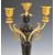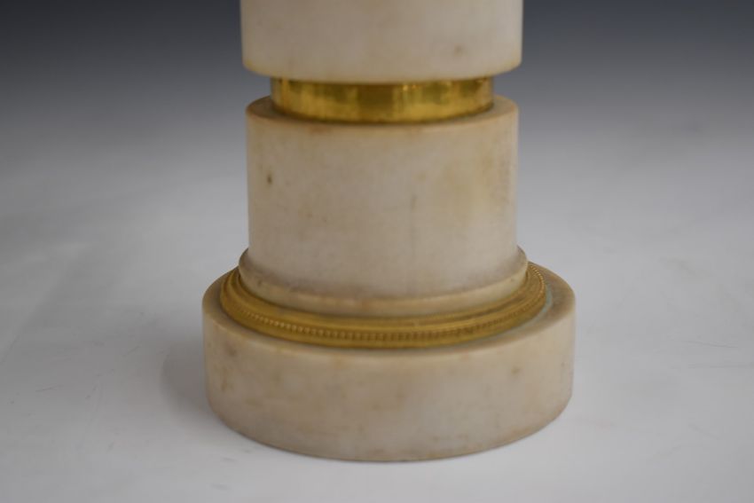 A pair of 18thC bronze and ormolu figural candelabra with detachable swivel sconces, raised on circular stepped marble or similar bases, H35.5cm