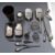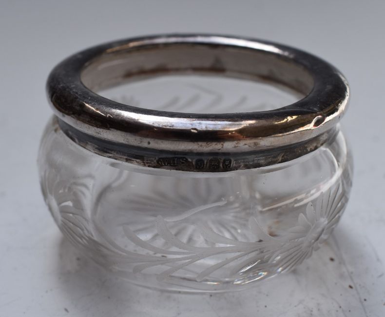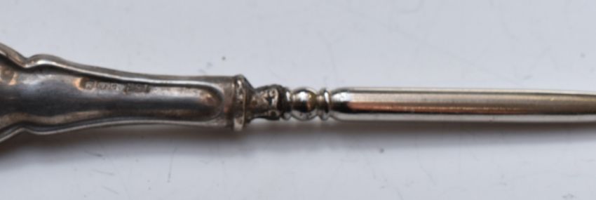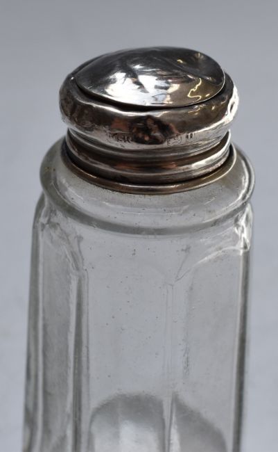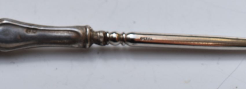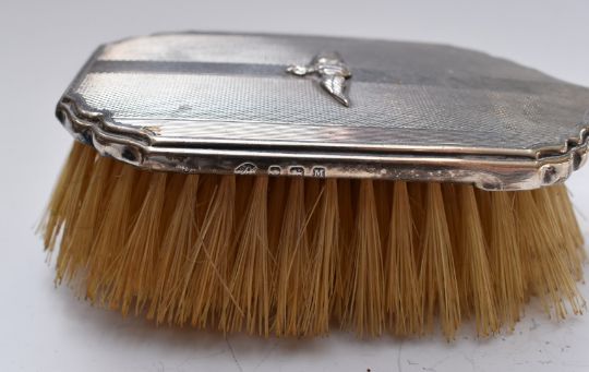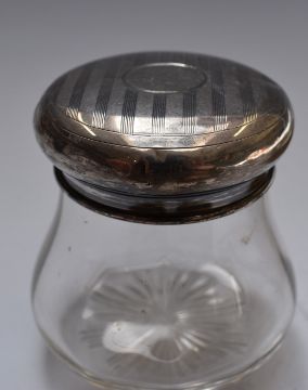 A collection of hallmarked silver dressing table items and silver mounted cut glass including a pair of RAF brushes, two glove stretchers and horn beaker, London 1890, height 14cm