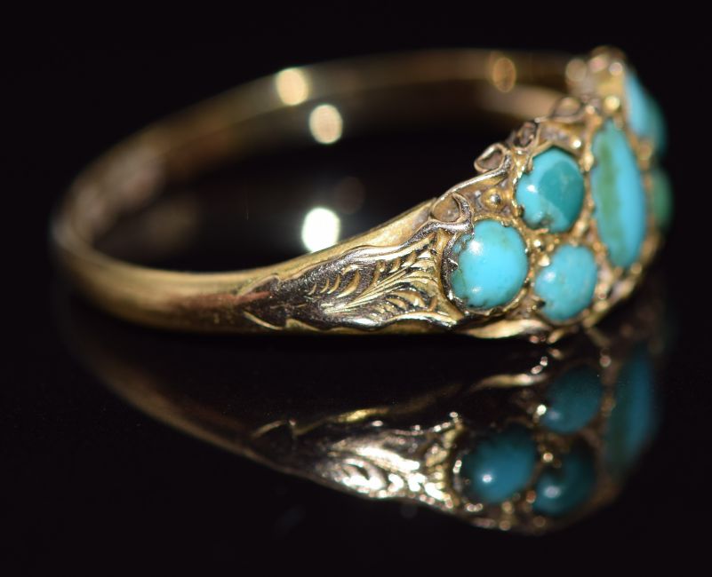 Victorian 18ct gold ring set with turquoise cabochons, 1.9g, size O/P