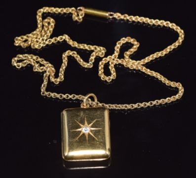 An Edwardian 18ct gold necklace / chain with an 18ct gold locket set with a diamond in a star setting, Chester 1904, 14.8g