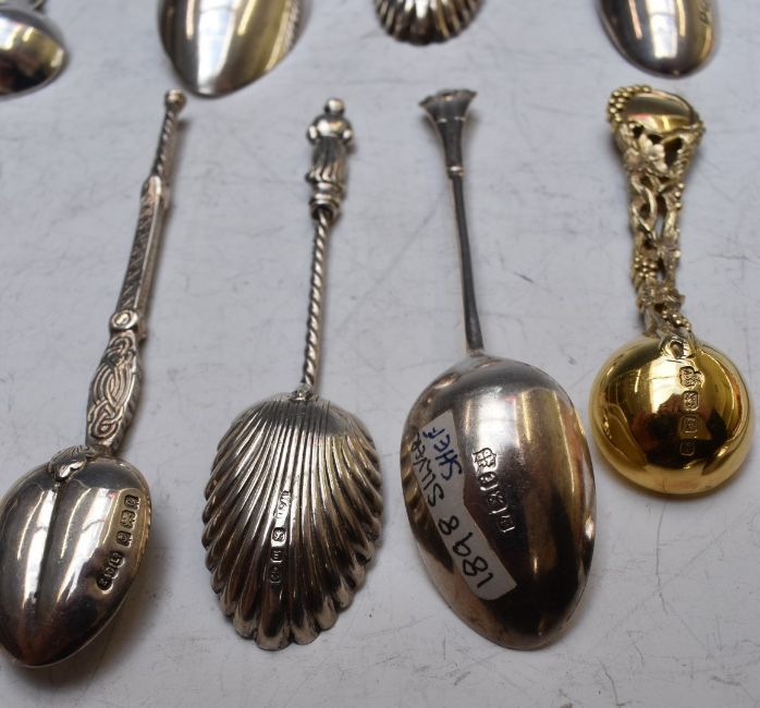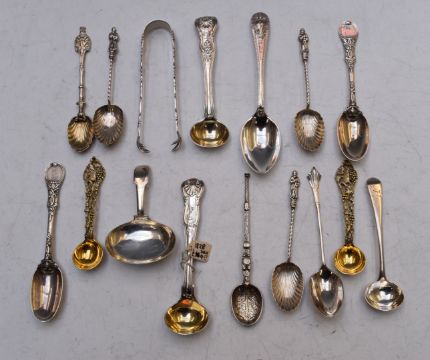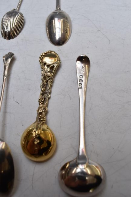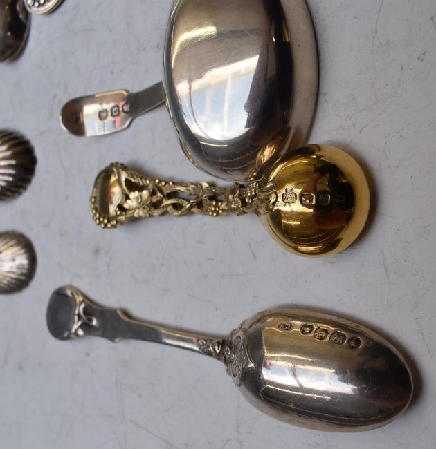 Georgian and later hallmarked silver spoons including a caddy spoon, London 1811, silver gilt salt spoons, King's pattern mustard spoons etc, weight 241g