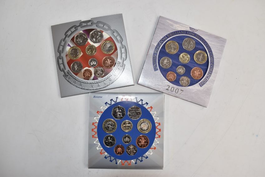 Royal Mint United Kingdom Brilliant Uncirculated Coin Sets 2005-2008 and a further 2008 Royal Shield of Arms set