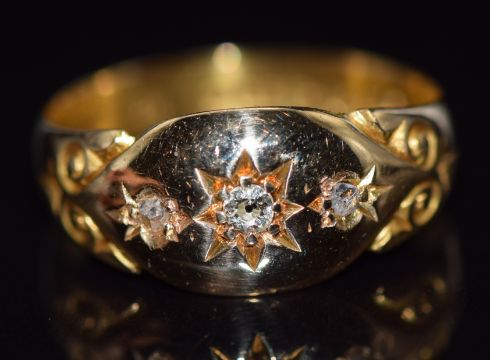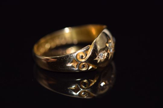 Edwardian 18ct gold ring set with three diamonds, Chester 1905, 3.1g, size K/L