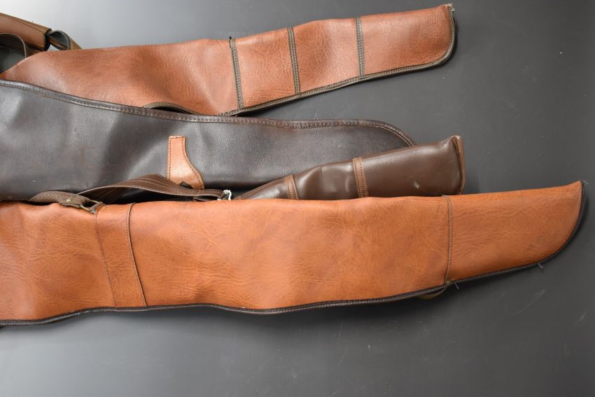 Six various shotgun or rifle slips including leather examples, some with wool linings.