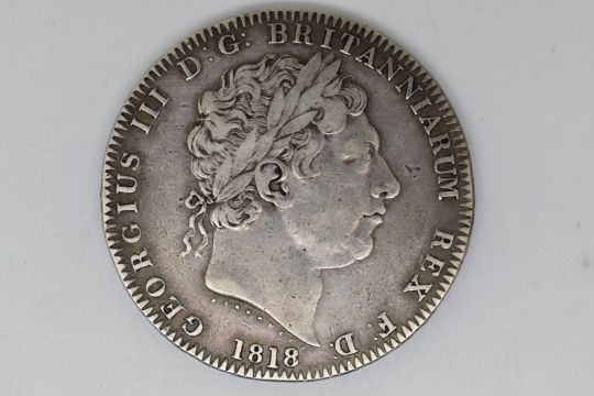 George III 1818 silver crown TUTAMEN LIX edge