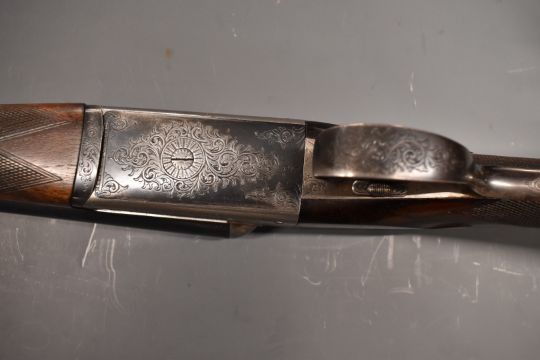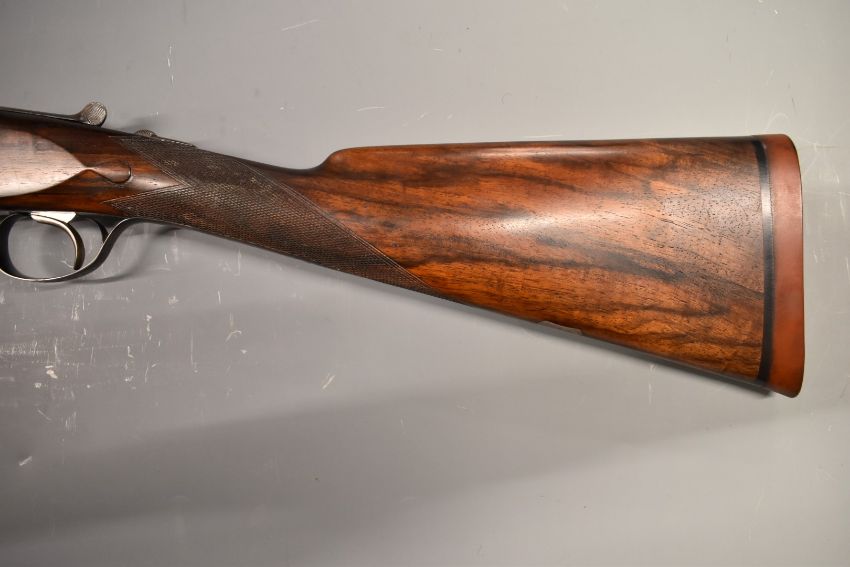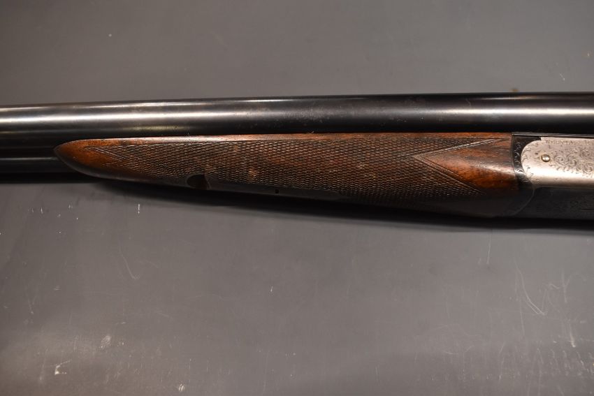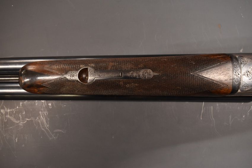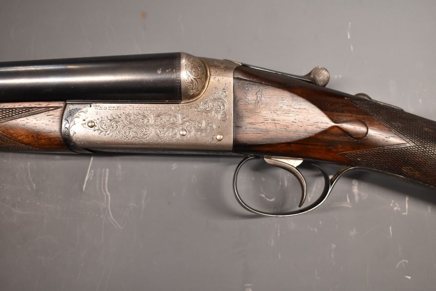 Westley Richards & Co 'The Heronshaw' 12 bore side by side ejector shotgun with named and engraved locks, chequered grip and forend, carved teardrop to the wrist, single trigger, engraved trigger guard, top plate, top lever and underside, vacant cartouche to the underside of the stock, 'Safe' inlaid in gold and 28 inch barrels choked improved cylinder and engraved 'Westley Richards & Co London 'The Heronshaw'', overall length 112cm, length of pull 34.5cm, serial number 01846, in period fitted brass bound leather case.  PLEASE NOTE THAT A VALID RELEVANT FIREARMS/SHOTGUN CERTIFICATE IS REQUIRED TO HANDLE/PURCHASE THIS ITEM.